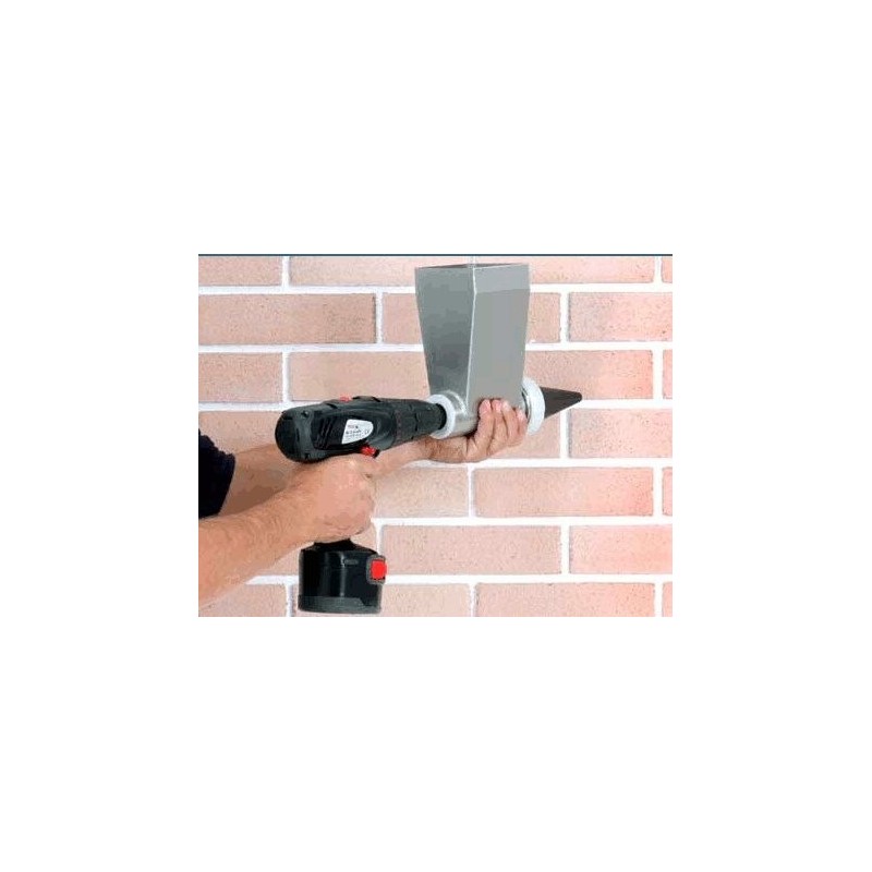 La fugatrice è un accessorio che può essere utilizzato con tutti i trapani e avvitatori che hanno la possibilità di cambiare il senso di rotazione. Con questa modalità è possibile utilizzare malta con granulometria tra 0 e 2 mm e di riempire così piccoli spazi senza difficoltà. In più è dotata di un ugello che permette di riempire fori molto piccoli. La possibilità di regolare i giri e la velocità permette di utilizzare la fugatrice in situazioni molto diverse, come ad esempio quando c'è bisogno di un accurato lavoro di riempimento degli spazi tra file di mattoni o pietre.